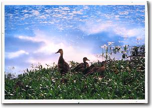 his parents to creep quietly alongside me. The ducks eventually swim off, and