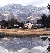 When it rains in my neighborhood, the mountains are reflected in the big puddle
