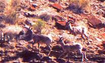 whole family of big-horn sheep, making their way along the rocky canyon wall,