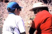 Hualapai community of Peach Springs. About 25 tourists gather into two vans,