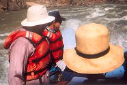 frigid cold Colorado River, inside the walls of the Grand Canyon, on a raft.