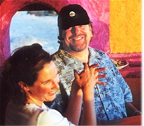 there on our porch. Debbie throws her arms around her husband and giggles. She