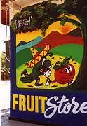 at the produce market. The tv is showing the telenovelas that put U.S. soap