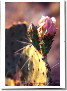 | In May, the pink bud of the prickly pear