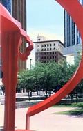 | The red brick Bank One Building, through the modern steel
